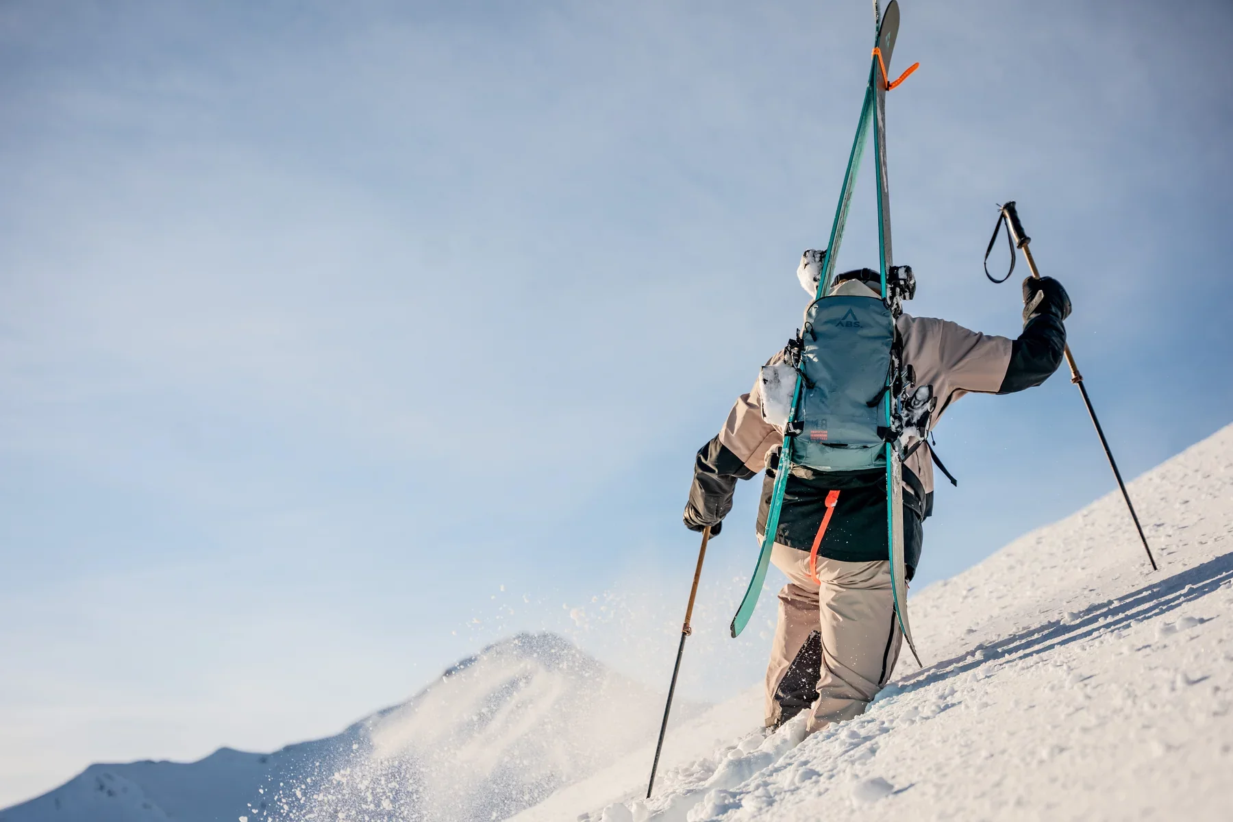 An additional compartment offers dedicated storage for skins or an extra jacket. The pack also provides multiple attachment options for carrying gear securely and efficiently.