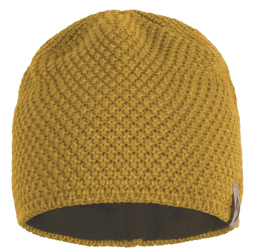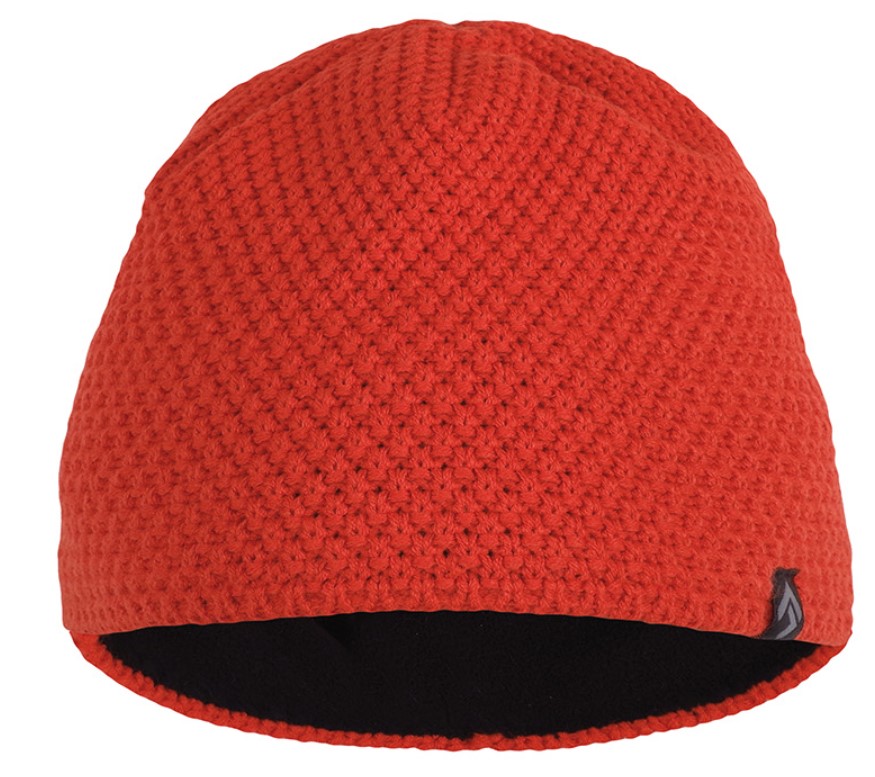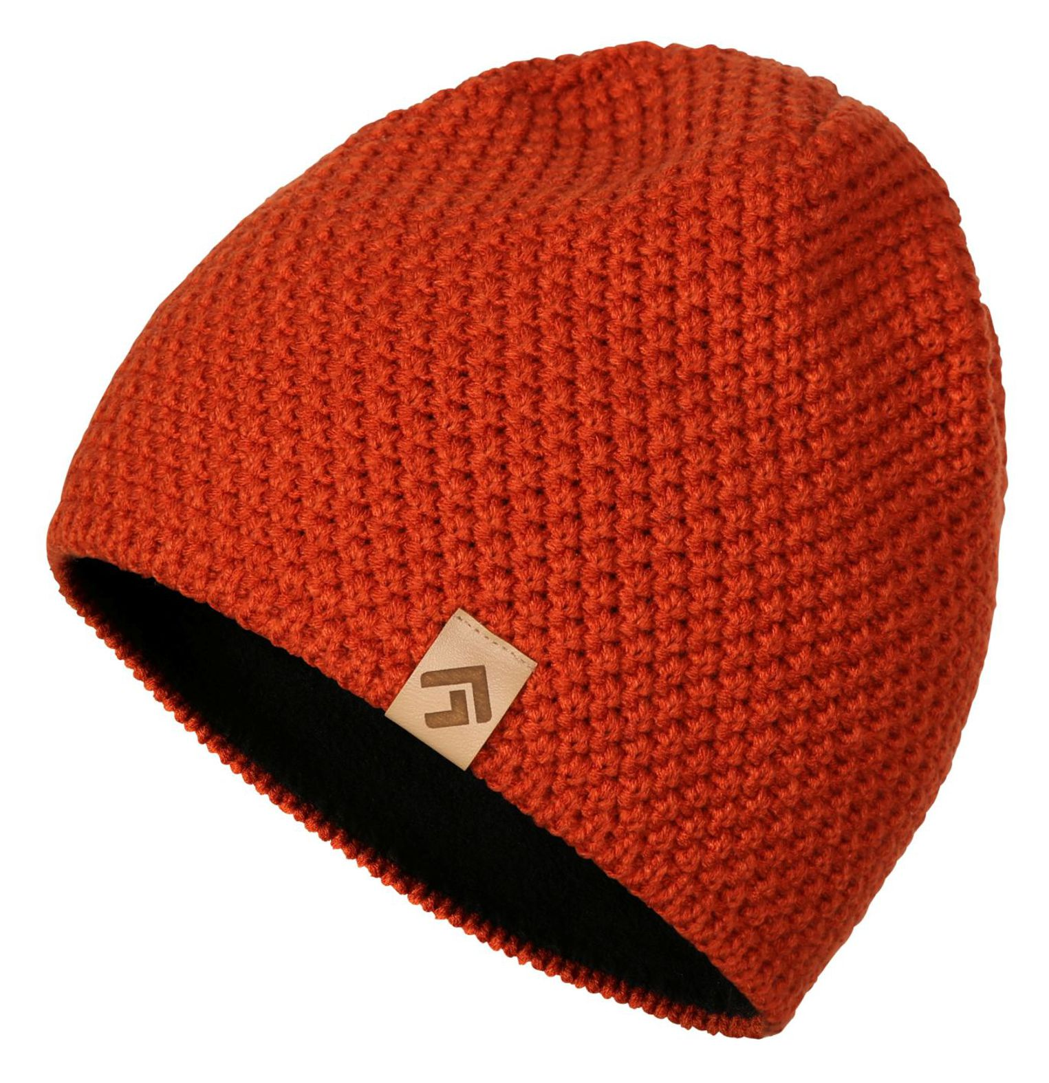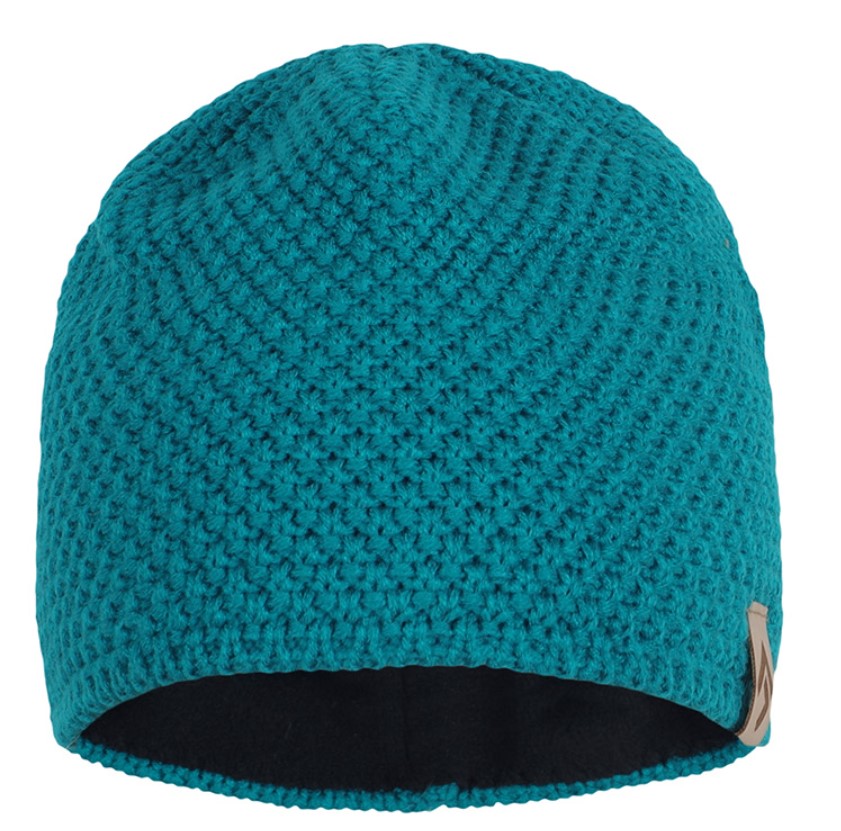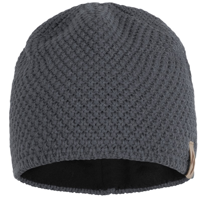 A stylish and well-fitting knit cap made from yarn with an added very comfy fleece layer.