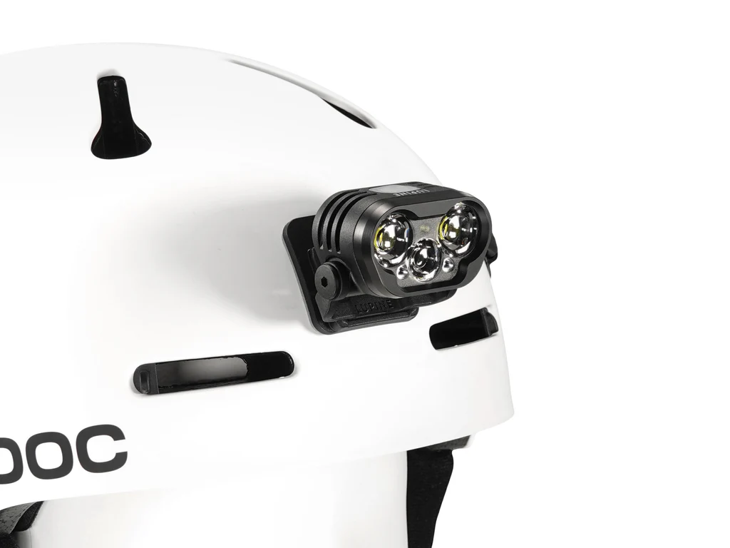 A Lupine lamp head with a matching FrontClick mount can be securely and quickly clicked into the mount. Ideal for helmets with smooth surfaces and no ventilation slots.