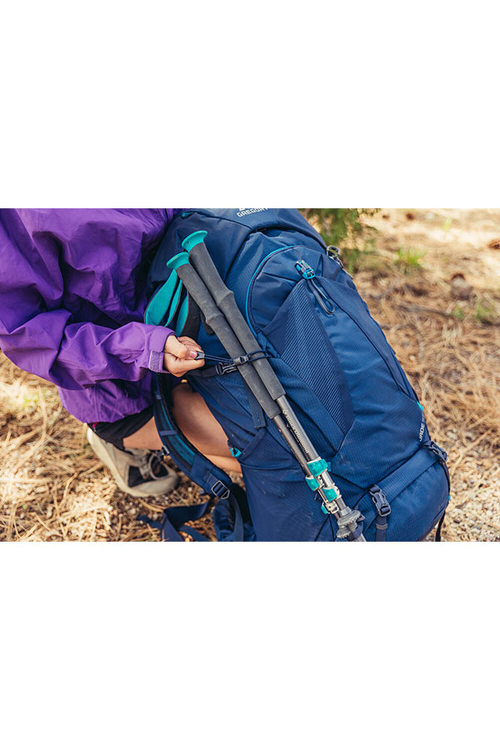 - Adjustable attachment loop and upper shock lock for trekking poles or an ice axe