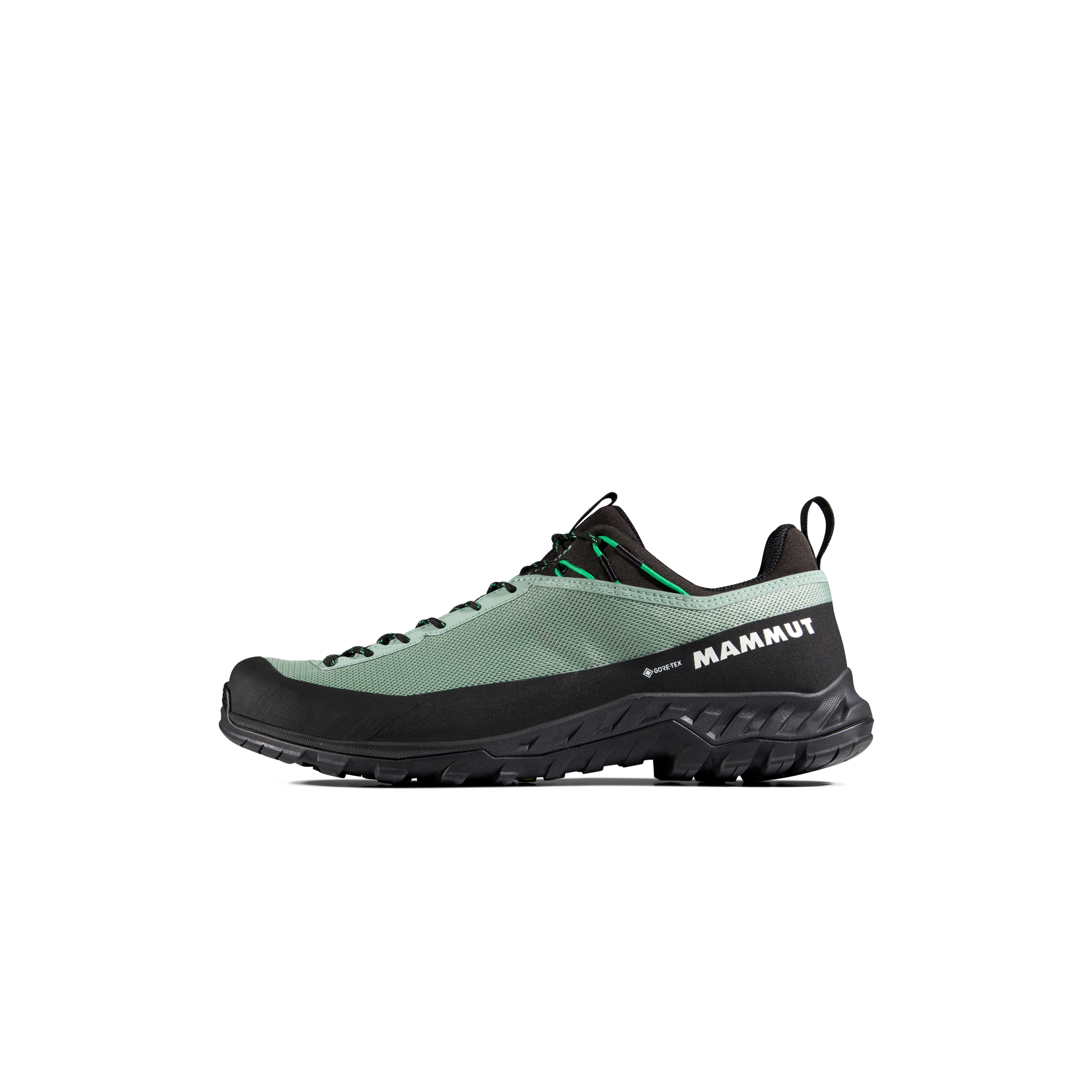 The Alnasca IV Low GTX Men are designed with a strong focus on precision and control. The FLEXTRON propulsion plate delivers stable, stiff support for more precise edging on technical terrain, and Mammut explains that the technology enhances stability, energy return, and support on uneven ground. The TPU midsole acts like a springboard for added rebound, while the construction helps maintain balance during scrambles and demanding approaches.
