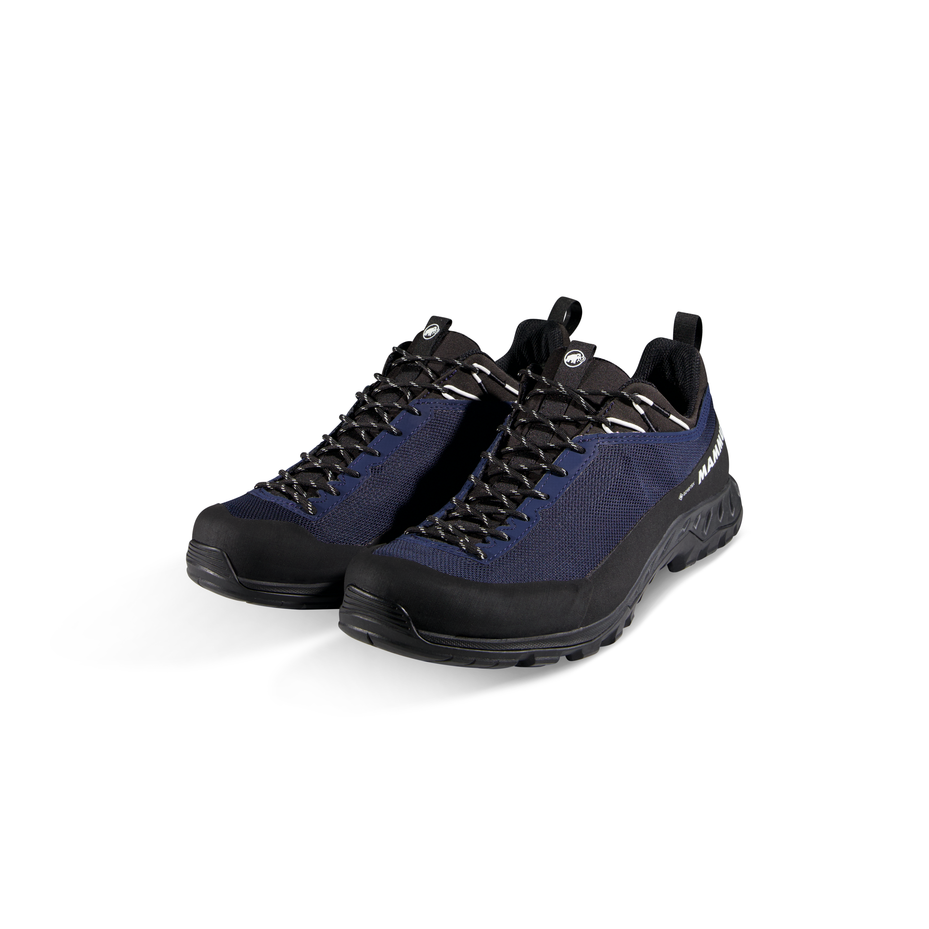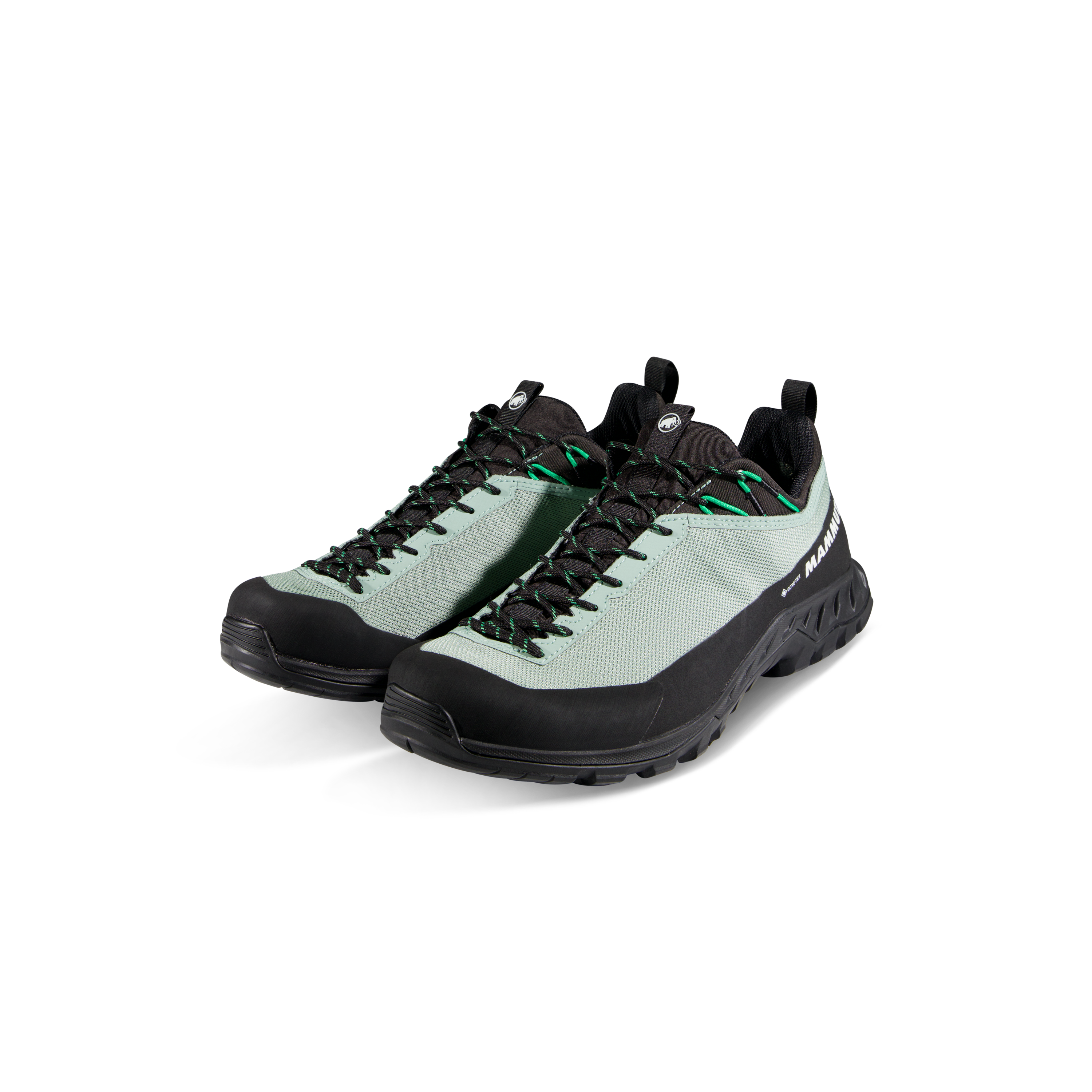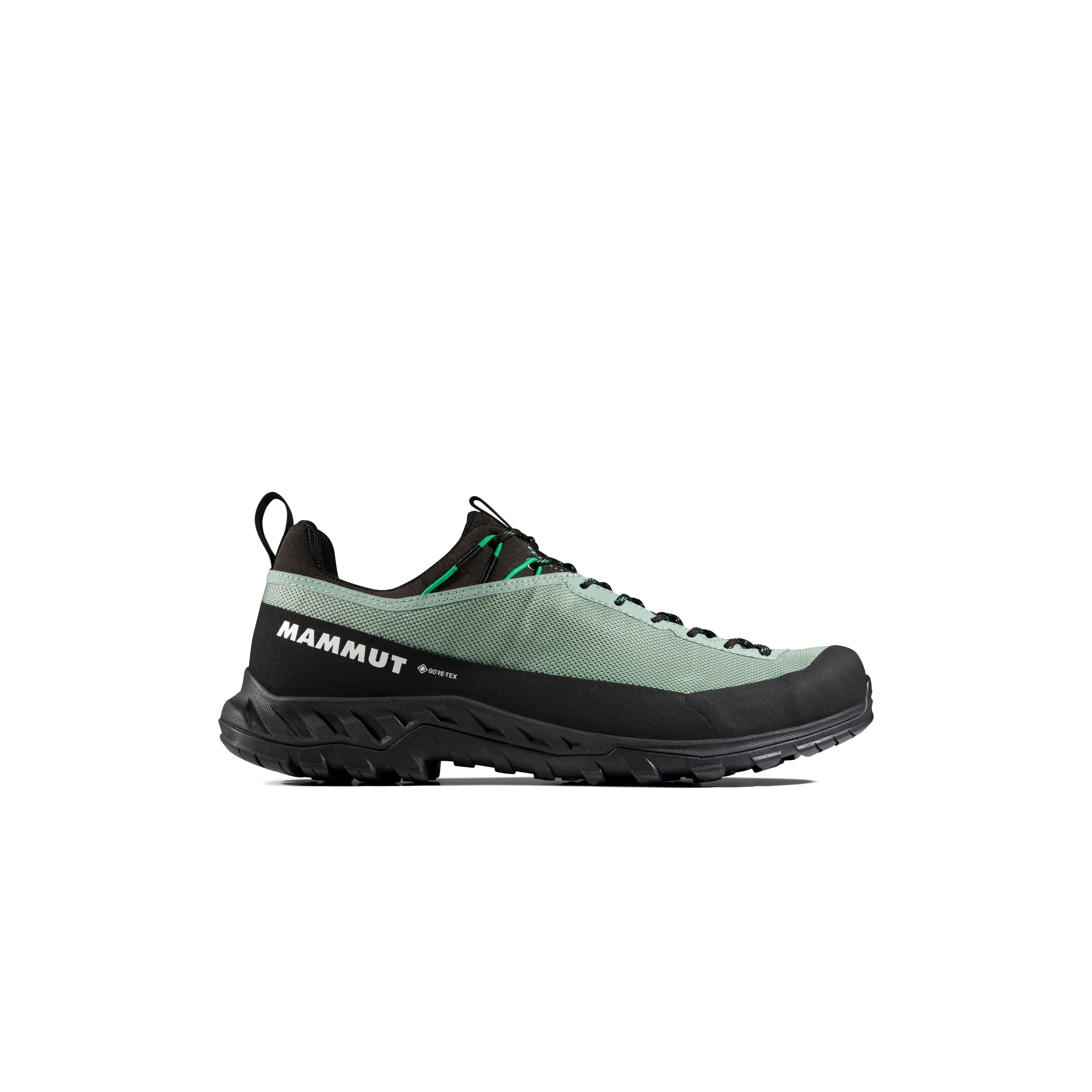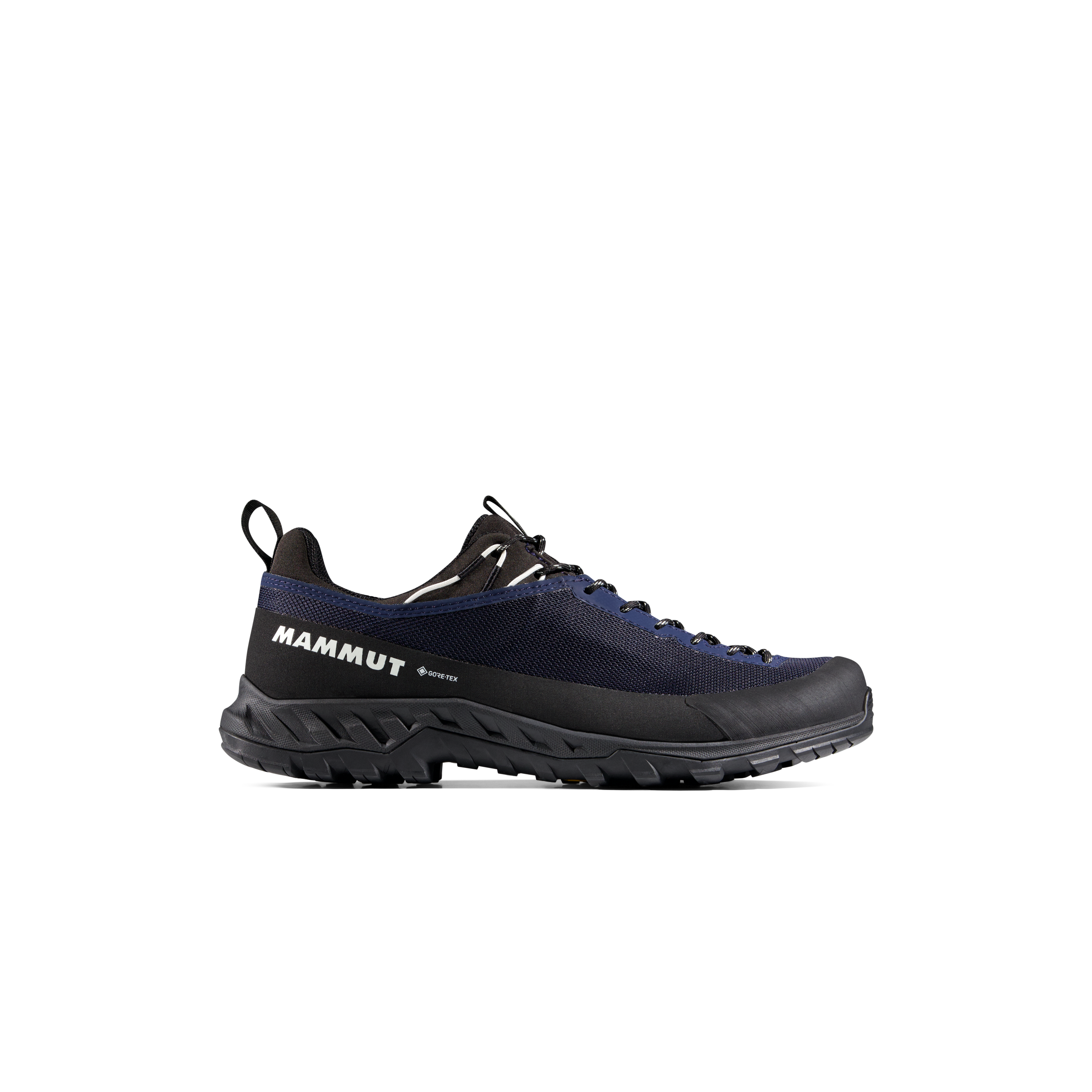 The Mammut Alnasca IV Low GTX Men are built for men who want lightweight, technical, and dependable footwear for reaching climbing crags, hiking in the mountains, and tackling more demanding routes. The manufacturer describes them as waterproof, low-cut approach shoes designed for confident footing during approaches, hikes, and via ferrata routes.