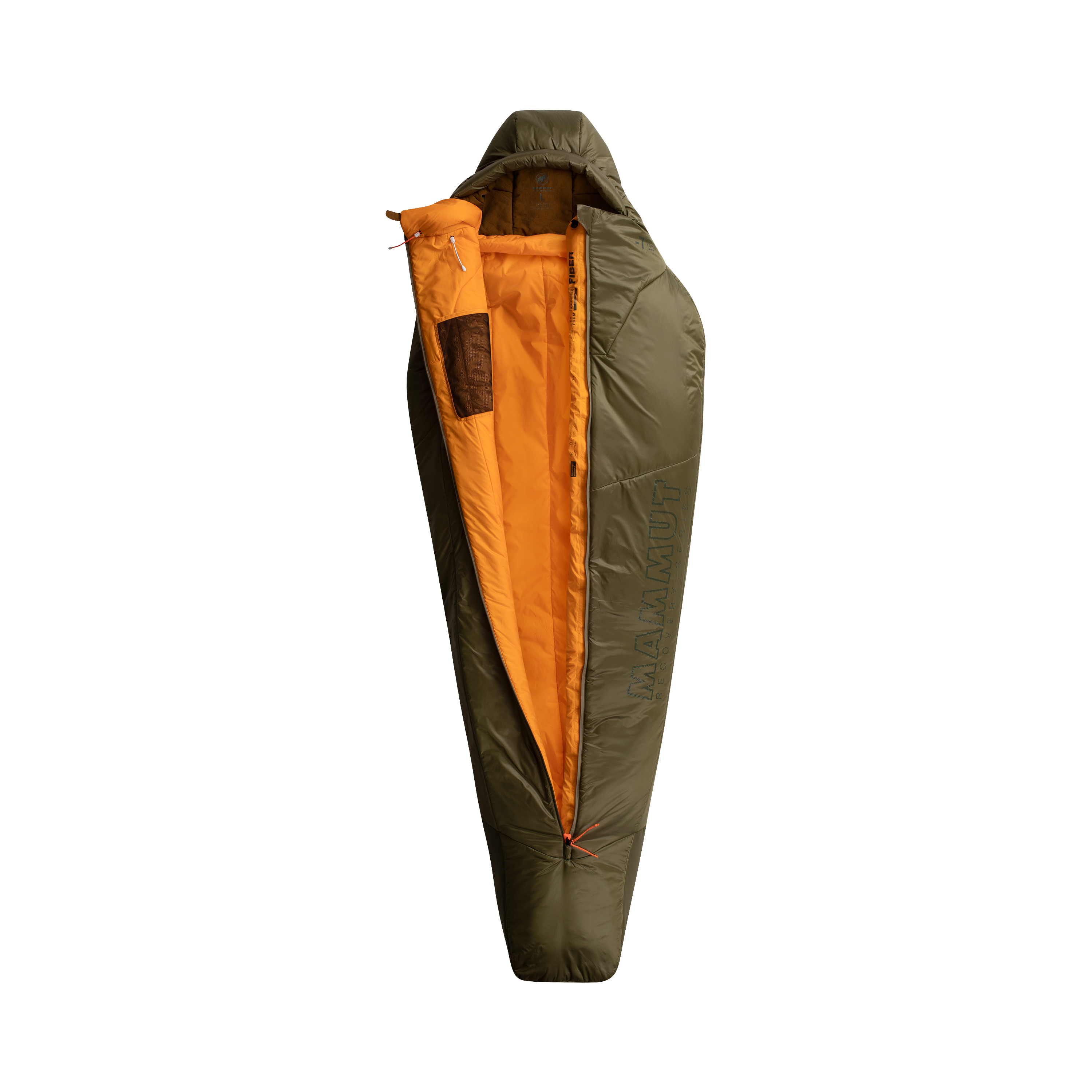 Mammut also places strong emphasis on sleep quality. The soft material in the hood area is designed to reduce noise and increase comfort, while the bag comes with a deep sleep mask and earplugs to help reduce light and outside noise. The revised anatomical foot box offers greater comfort without adding unnecessary weight, and the internal pocket provides convenient storage for valuables.