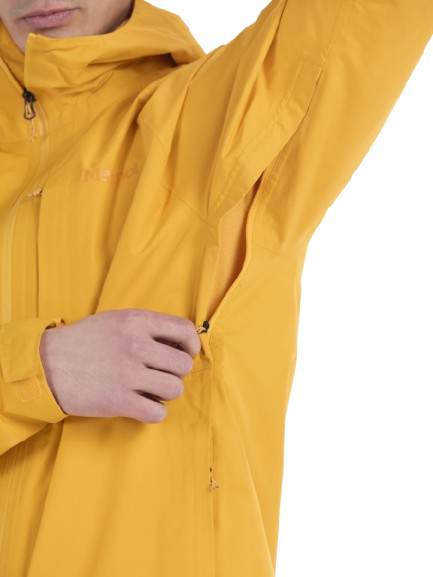 Underarm pit zips offer ventilation when needed, while the adjustable hood, VELCRO® cuffs, and drawcord hem help seal out cold and wet conditions. Secure zippered hand pockets and a hidden chest pocket give practical storage options for essentials.