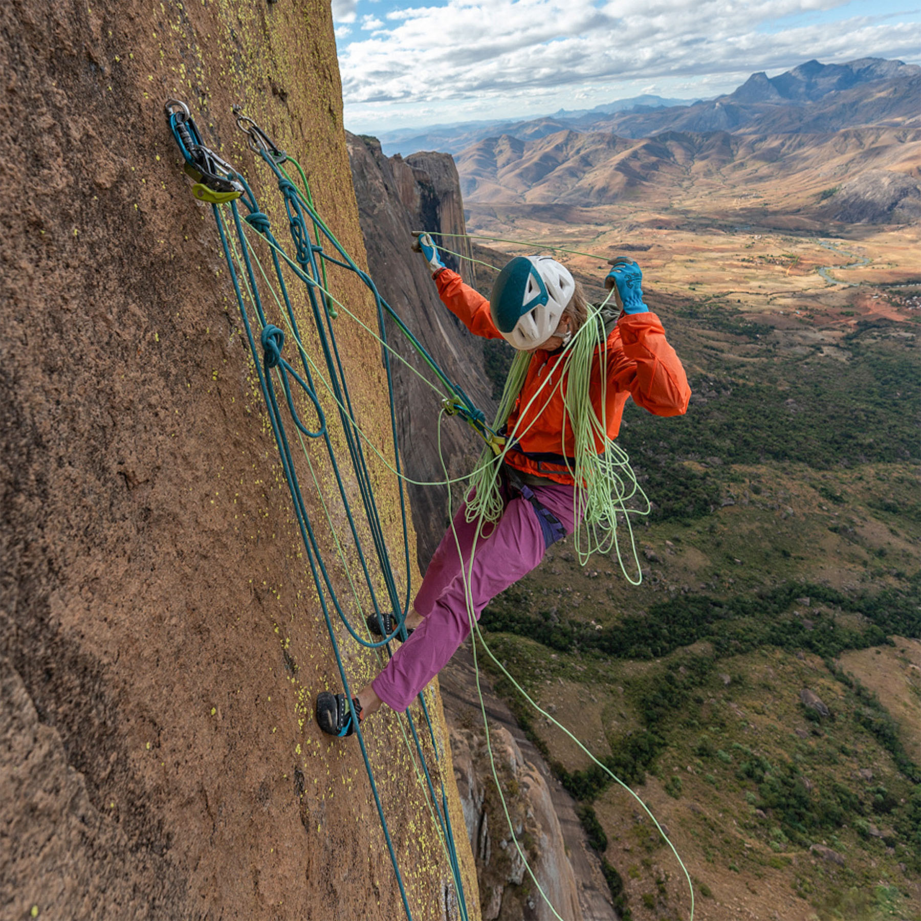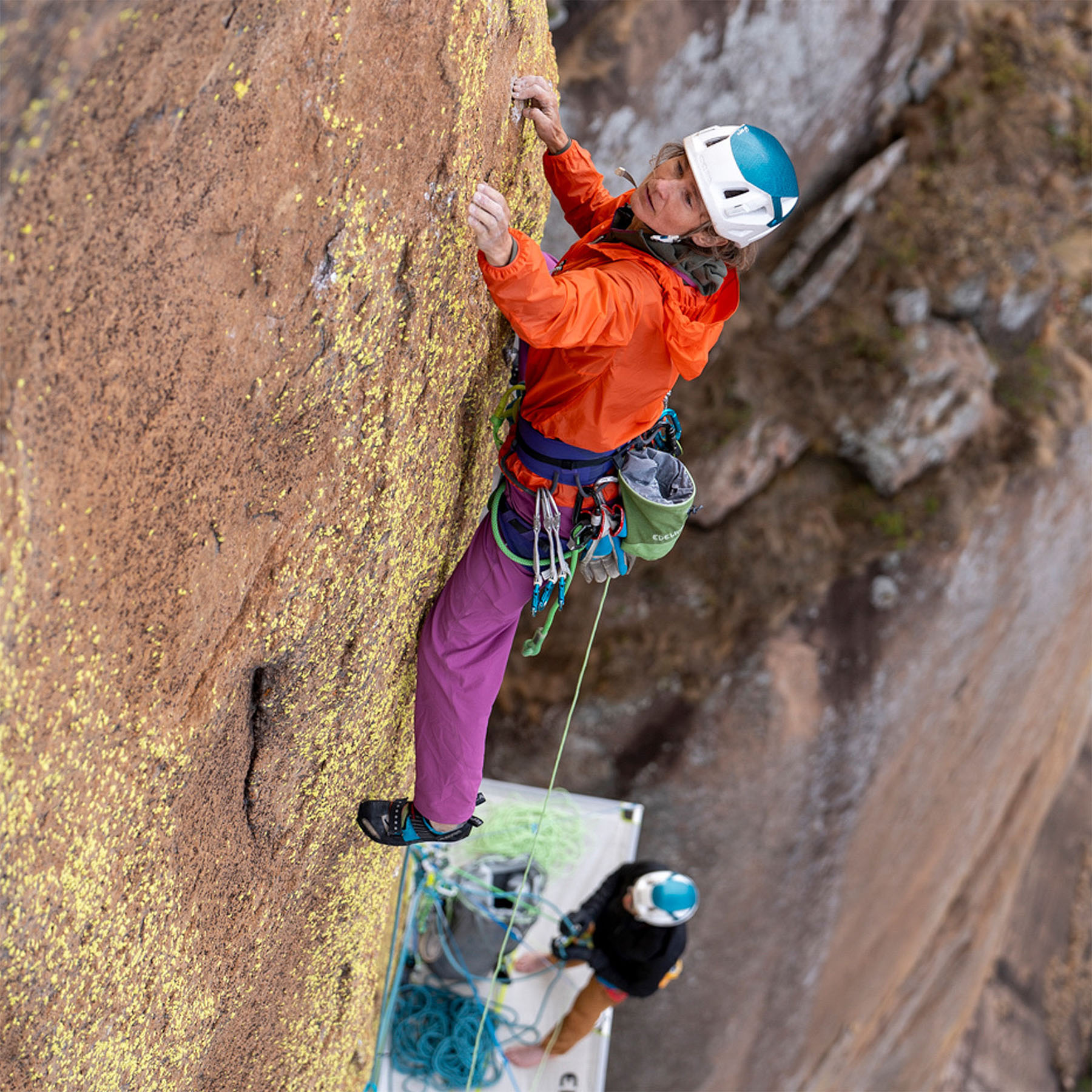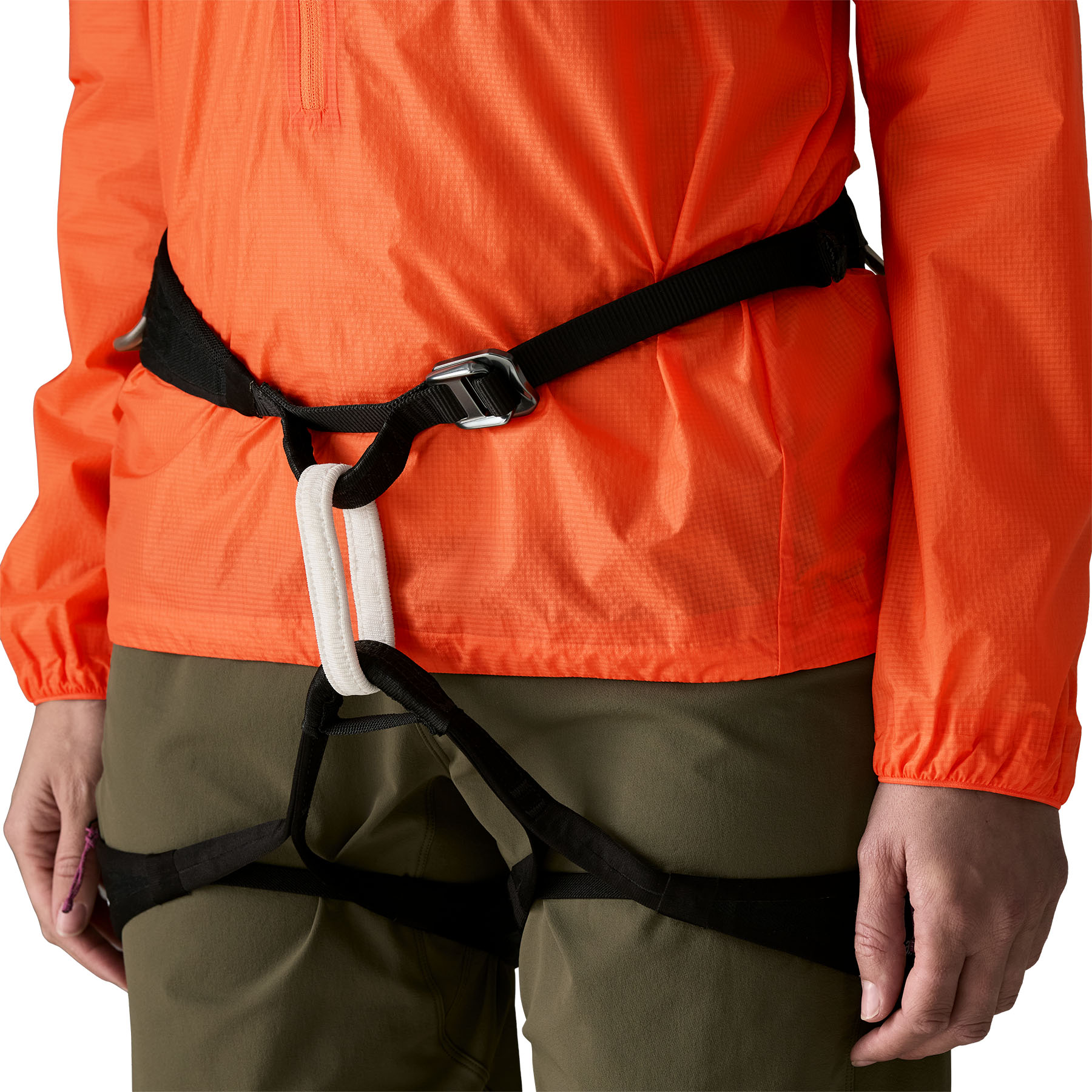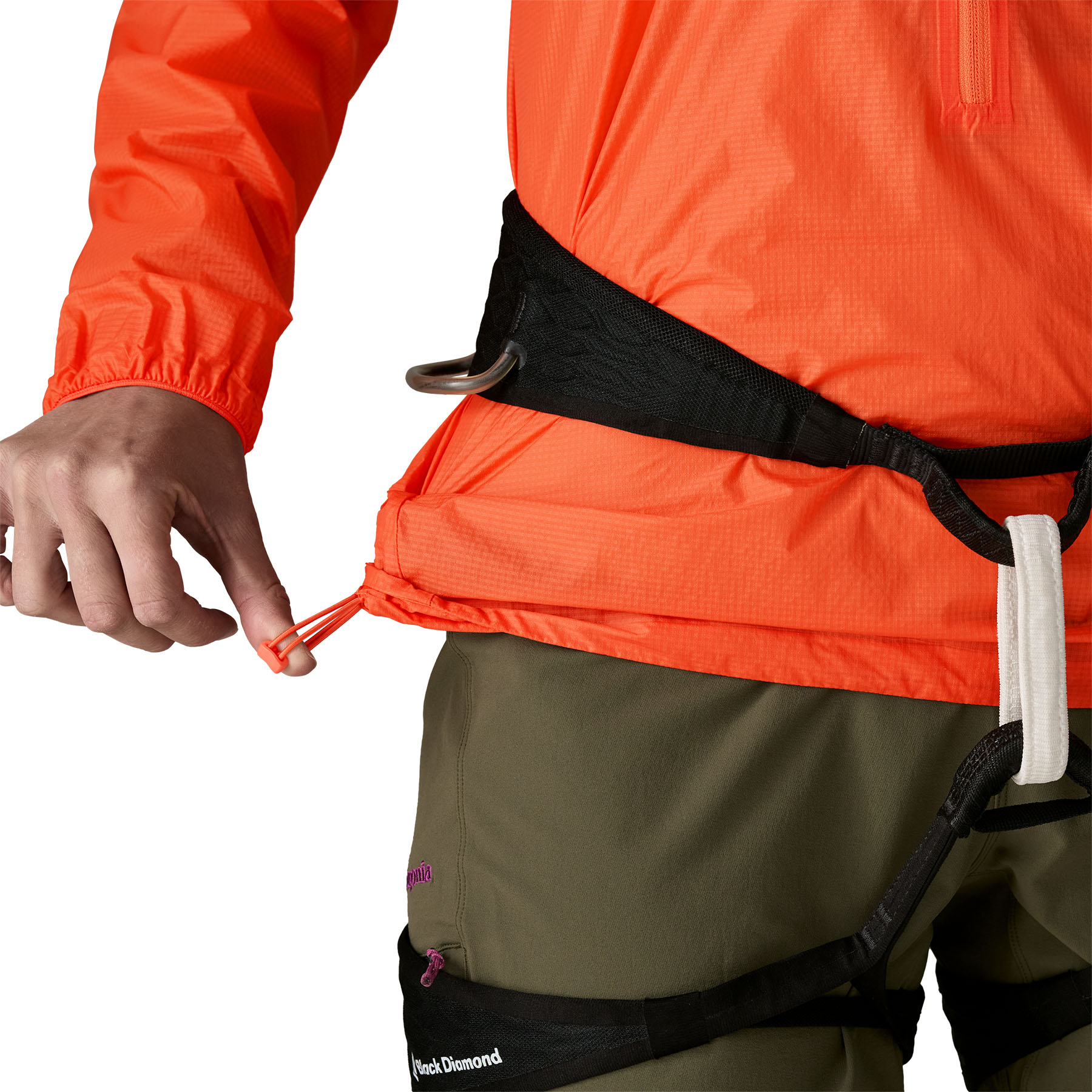 Patagonia’s iconic Houdini Jacket has been reimagined for serious climbers. The Houdini Rock Jacket is wind- and weather-resistant, offering unmatched overhead mobility and a long, slim-fit waist that stays securely under a harness. Engineered specifically for multipitch rock climbing, this jacket is part of the Free Wall Kit, designed for sustained, difficult routes where even the smallest rest restores just enough energy for the send.