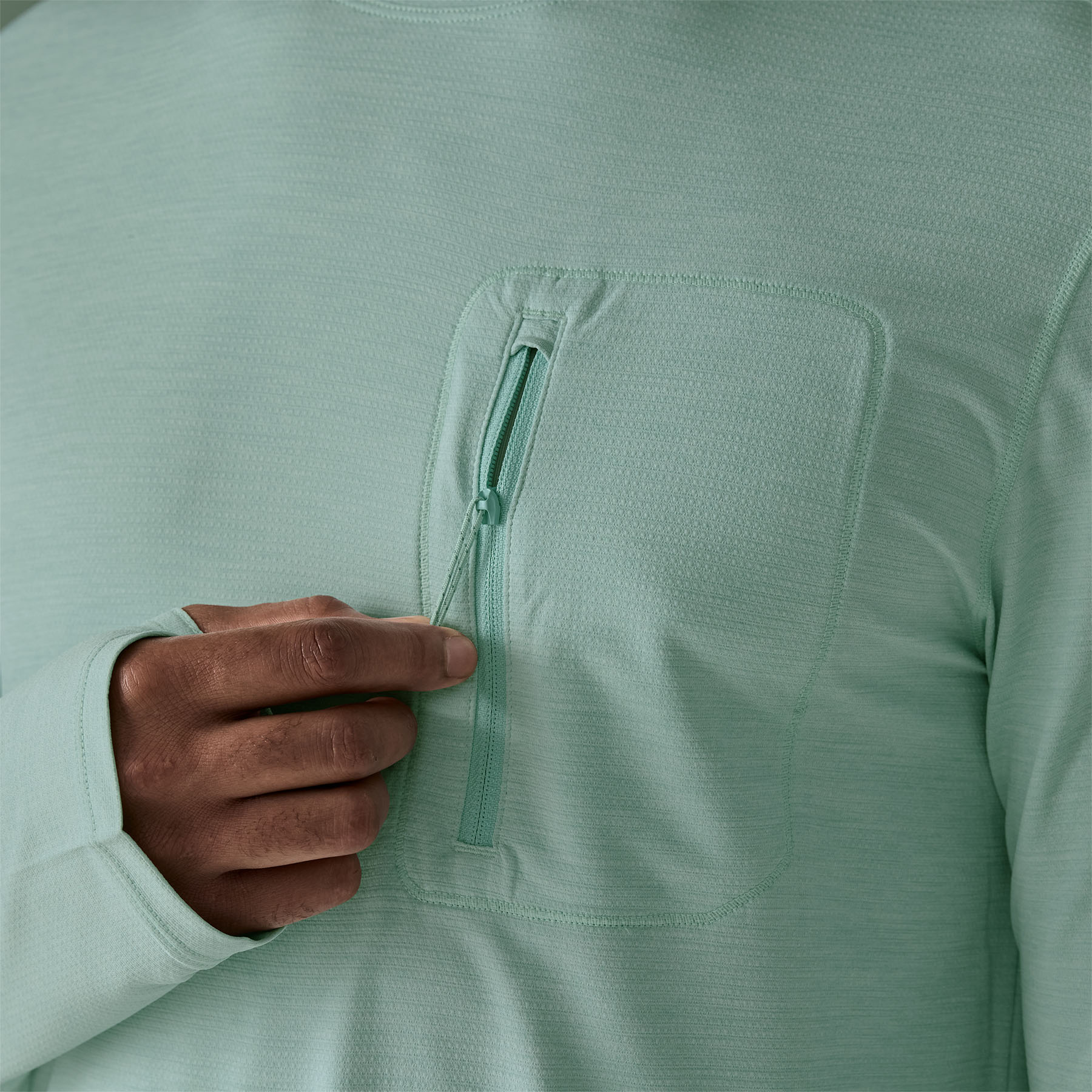 One vertical-zip chest pocket with a corrosion-resistant zipper securely keeps small essentials close - Construction Details