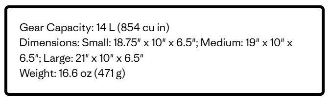 For moving quickly and comfortably on scrambles and hikes when you don’t need to pack the kitchen sink, this small 14-liter daypack stores necessities and features a highly breathable back panel and shoulder straps. Built from rugged 100% recycled nylon ripstop with a PU coating.