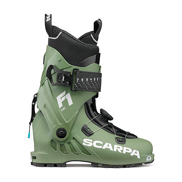 The SCARPA F1 SE is built for alpine touring — for adventurers who want to move fast uphill without compromising control and confidence on downhill sections. Weighing ≈ 1380 g per pair (≈ 690 g per boot),it is relatively light in its category.