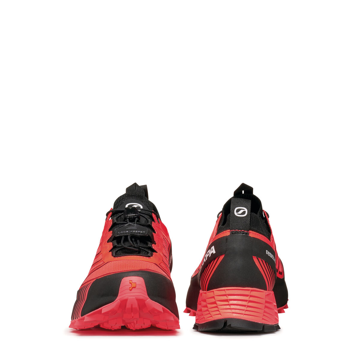 The most winning shoe in the collection undergoes a refresh. RIBELLE RUN 2 Woman is the top pick for who seeks unrivaled precision, stability, and control on the most rugged and rocky terrains. Its iconic rand 3S FRAME completely wraps around the shoe structure, ensuring unparalleled support and protection, particularly in unbalanced situations. The perfect choice for Skyrunning and short to medium-distance trails.
