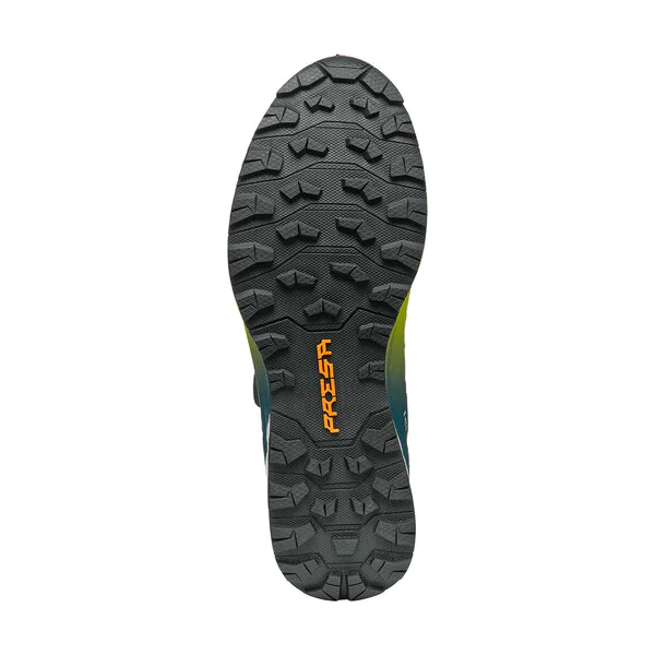 Mesh & microfiber fabric upper wraps round your foot like a sock thanks to the Sock-Fit LW construction system, avoiding pressure points and ensuring maximum comfort and precision fit. Protecting the ankle is the EXO SCARPA construction system. The heel is well stabilized by the iconic TPU band that completely wraps around the shoe.