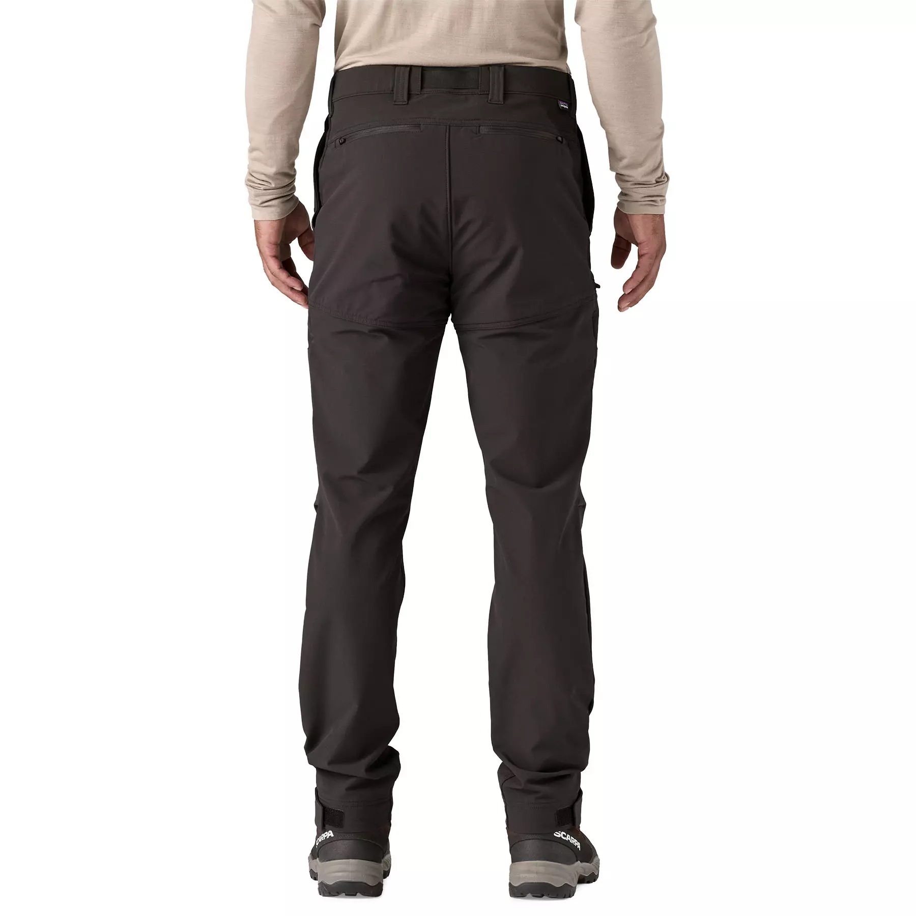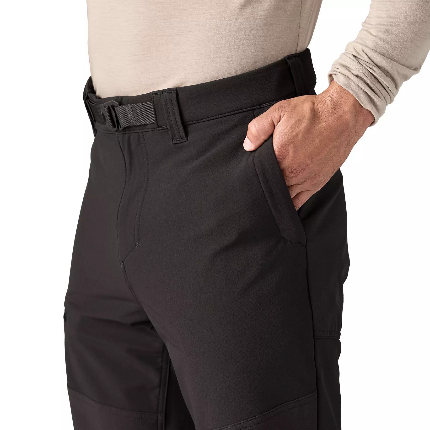 Gusseted crotch and prominent knee articulation for freedom of movement; designed for a sleek fit under a backpack waistbelt or a harness