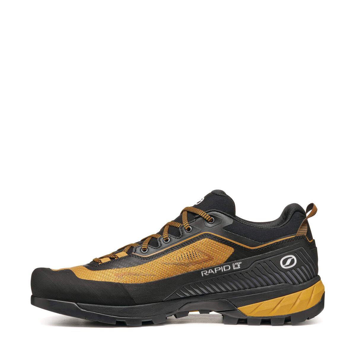RAPID LT is a versatile approach shoe with clean, streamlined design in technical weaving jaquard upper. Every detail is studied to ensure grip, comfort and protection such as the all around TPU rand and well-protected rubber toe cap. The sole is Vibram® MegaGrip compound with climbing zone and break system ensuring grip and stability.