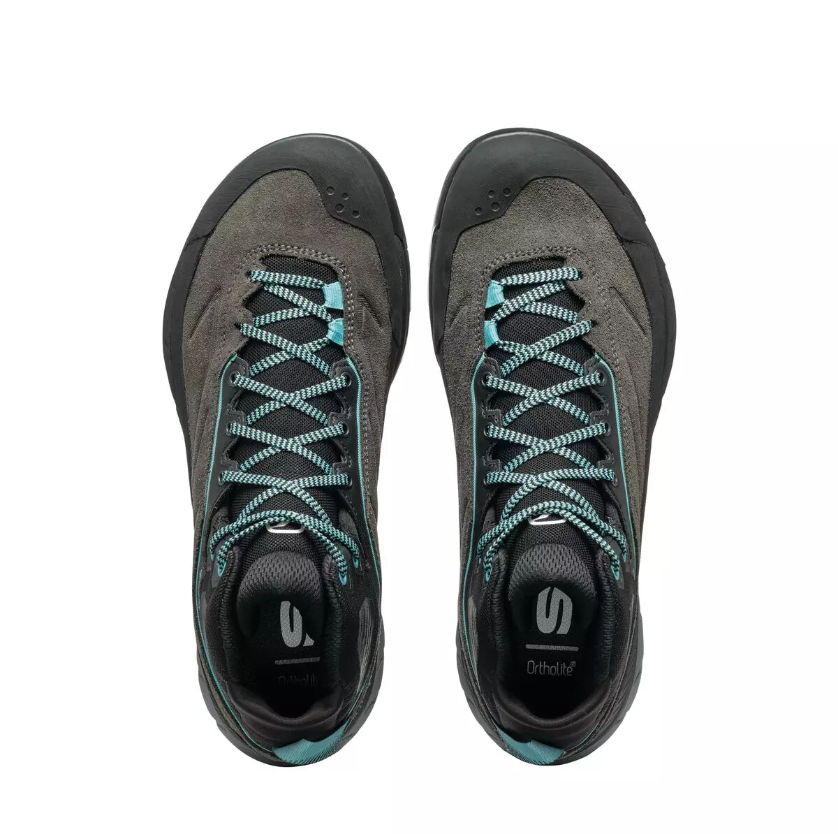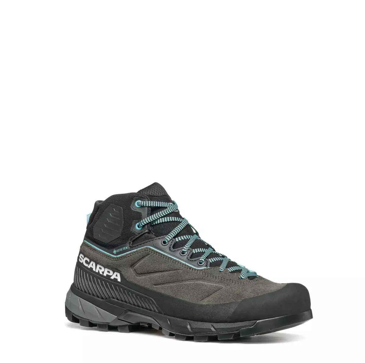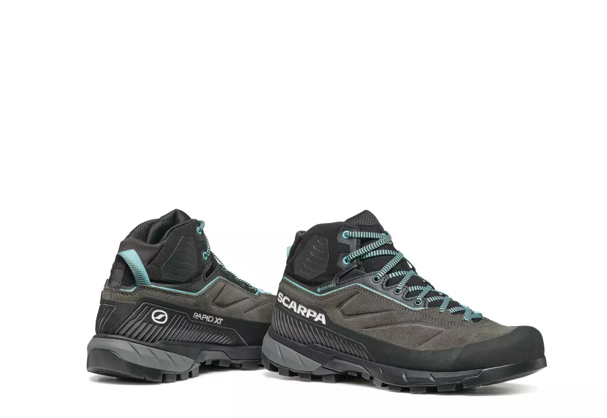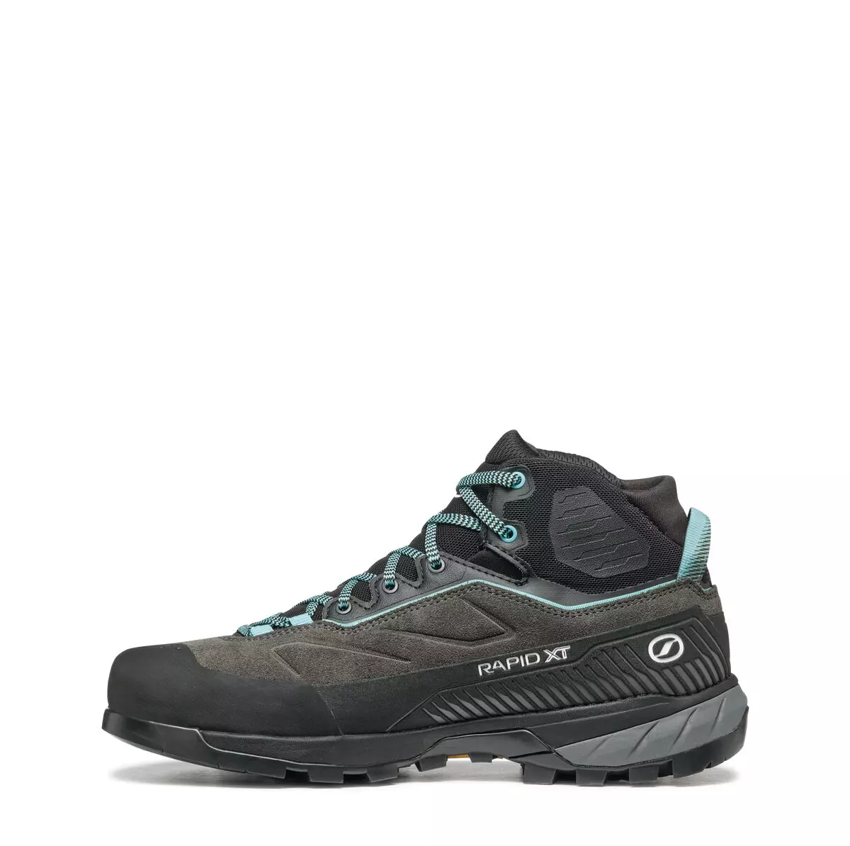 RAPID XT MID GTX WMN is the leather boot with a mid cut for protecting the ankles, suitable for approach, trail and light hiking. Every detail is designed to guarantee grip, comfort and protection such as the all-around TPU rand and the new GORE-TEX ePE membrane, which guarantees high technical performance with low environmental impact. The sole is Vibram® MegaGrip with climbing zones at the toe and Brake System at the back, ensuring stability and grip. The innovative shape, wide and ergonomic at the toe, is designed to follow the conformation of the female foot.