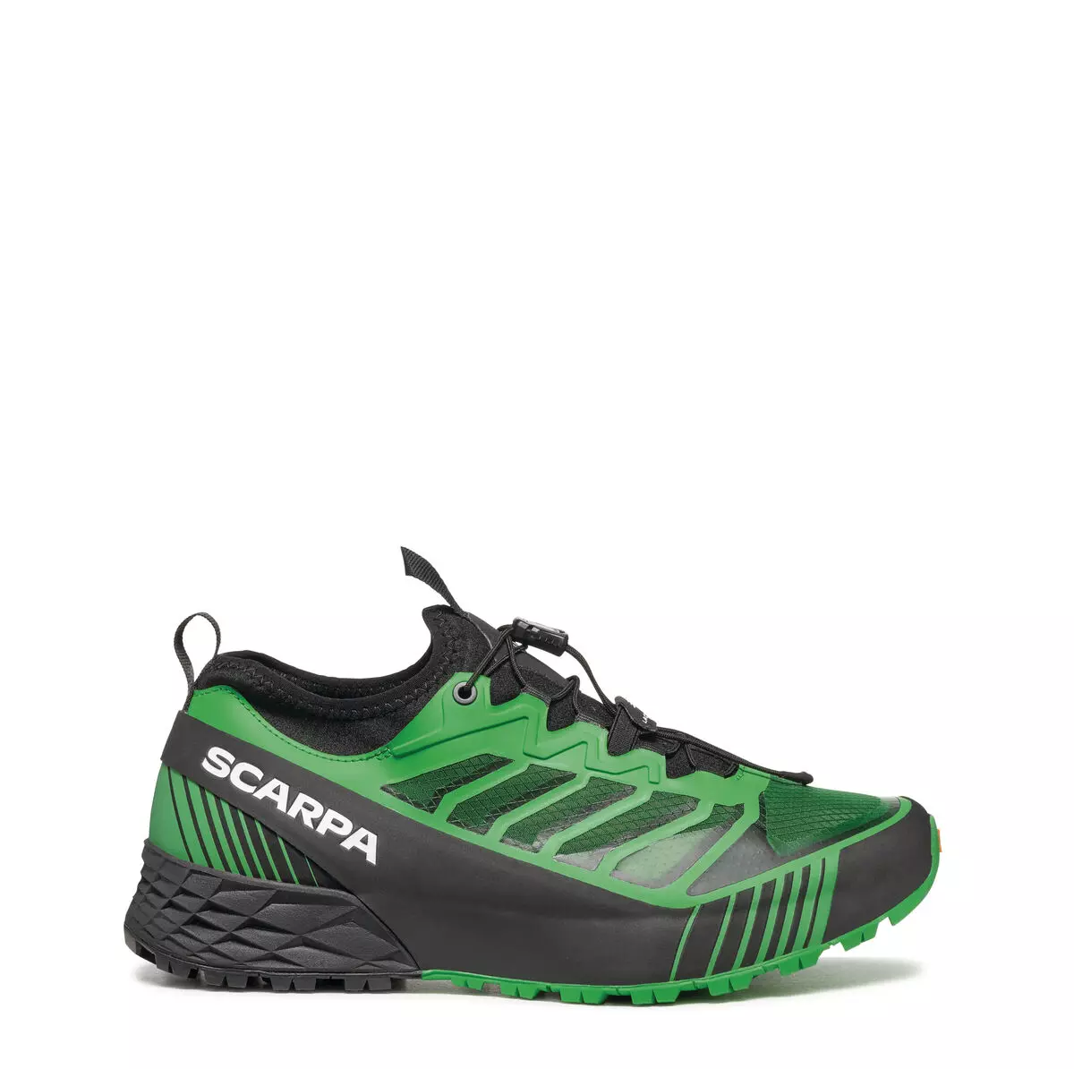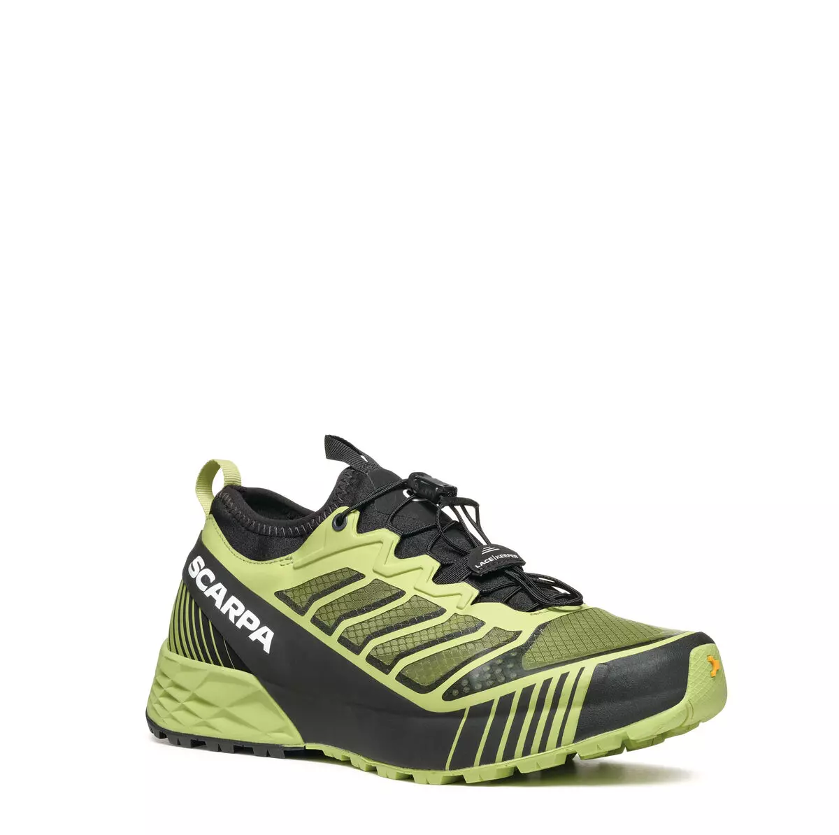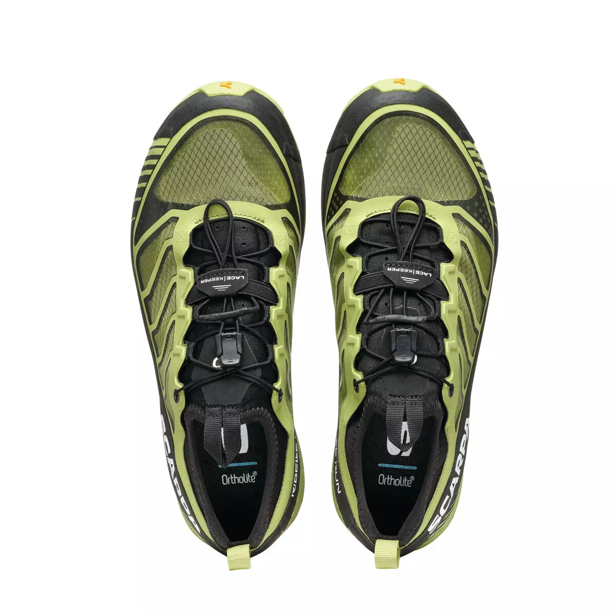 UPPER: The upper is built with Sock-Fit LW by SCARPA construction, featuring a lightweight and super breathable mesh bootie with heat-sealed reinforcements, which guarantees a precise and even wrap around the foot, while still providing outstanding comfort and flex at the ankle collar, tongue and forefoot. The shoe is built to wrap the foot with precision thanks to it’s reduced volume fit, perfect for this more technically oriented shoe. The heel is stabilized by an TPU band that completely wraps the shoe.