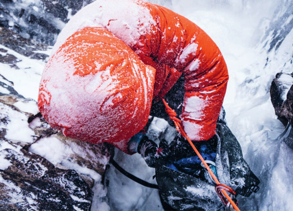 - Качулка, съвместима с каска за катерене, пристягаща се с една ръка за плътно прилягане, максимална топлина и защита.