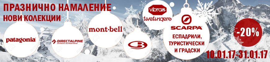 Превръщаме всеки ден в празник, особено сега, когато навън е истинска зима! В магазини Basecamp от 10.01. започва Празничното намаление на Новите колекции на марките, с чиито продукти зимата ще е още по-приятна. Patagonia, Direct Alpine, Mont Bell, Icebreaker, Vibram Five Fingers, туристически, градски и катерачни обувки от Scarpa, а сега и новият модел ски обувки Vector - всички с -20% намаление! Очакваме ви на адрес Черни връх 90, Стамболийски 46 и онлайн тук.