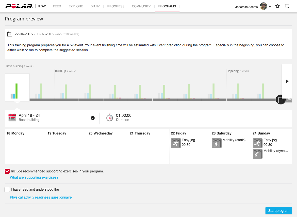 Но за да извлечете най-доброто от Програмата, може да помислите за използването на GPS часовник от Polar, като някои от следните: Polar M200, Polar M400 или Polar V800. Тези GPS спортни часовници измерват сърдечния ви ритъм и ви позволяват да поставяте цели на тренировките.
