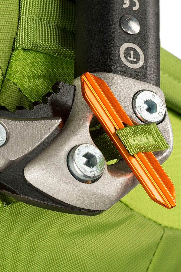 Dual tool attachment config has two separate attachment systems that work with any ice axe design from any era