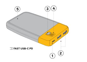 OUTPUTS: 1x USB C-PD, 2x USB A