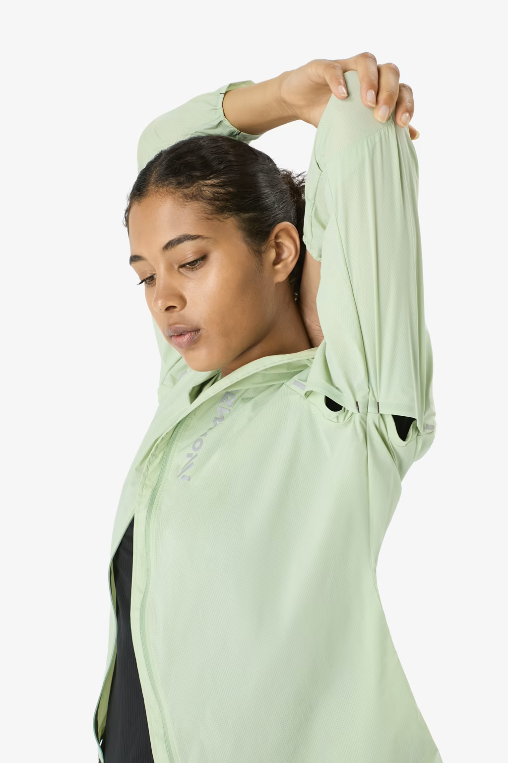 The Nnormal Trail Wind Jacket is an ultra-light, wind-resistant layer designed for trail running and outdoor activity. Made from 100% recycled, soft-touch polyester and weighing just around 123 g, it offers excellent packability and freedom of movement. A two-way front zipper allows quick ventilation control, while reflective details ensure visibility in low light. With an adjustable hood and a stowable design that folds into its own pocket, it’s a versatile choice for unpredictable weather on the trail.
