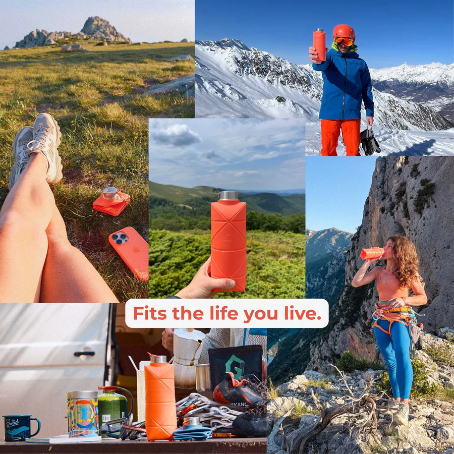 The original Origami Bottle, now in Version 2. Features a stronger premium material, a rigid plastic neck, and upgrades for long-lasting performance.