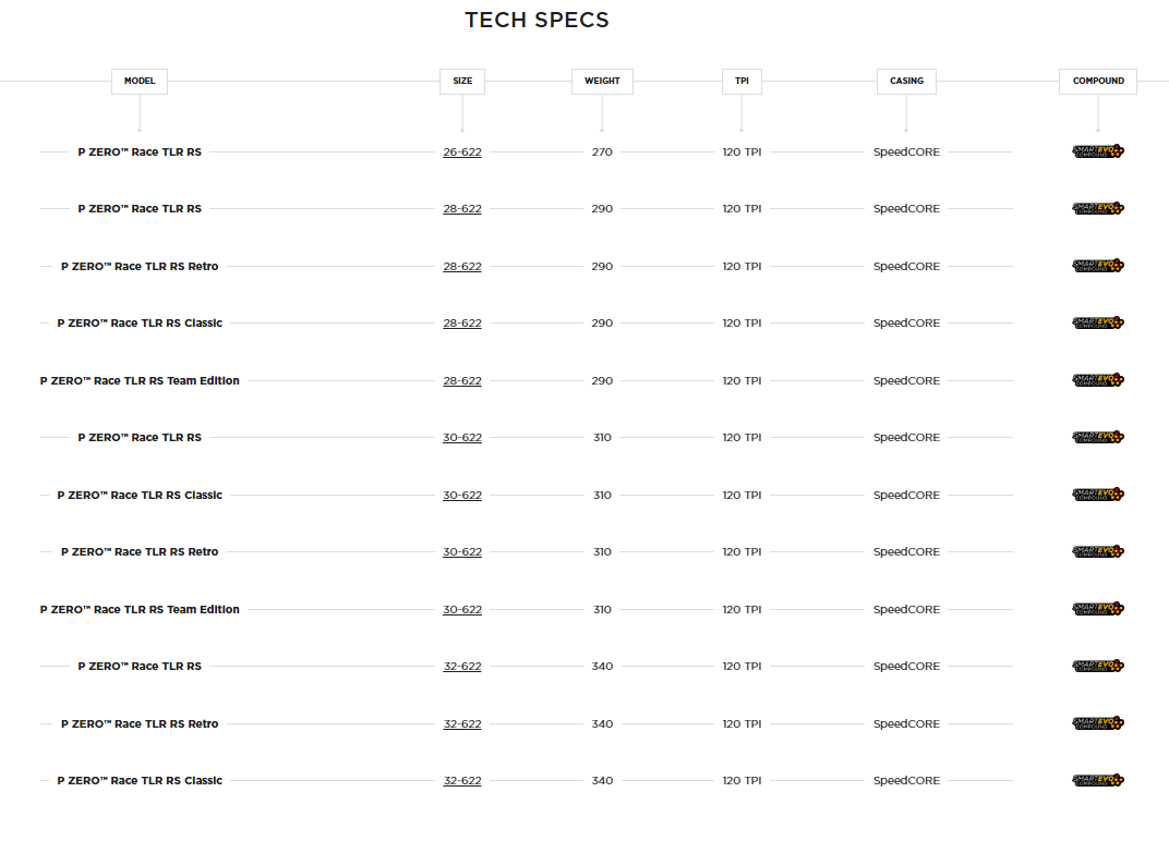 The P ZERO Race RS has all the relevant characteristics of an all-season racing tire: it always ensures reliable grip in all weather conditions, including wet and cold days, while offering the racing performance that makes the P Zero Race series the preferred choice of professional cyclists. The exceptional performance is achieved through Speedcore tubeless technology and the SmartEVO compound. The end result is a tire that offers improved grip, increased durability and puncture resistance, especially in wet conditions.