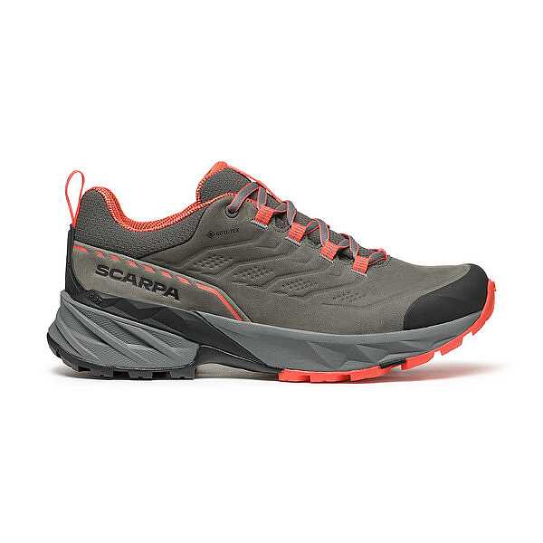 Lightweight women's hiking shoes with nubuck upper and GORE-TEX membrane. Combines comfort and protection with a stylish Titanium/Coral accent, ideal for varied terrain.