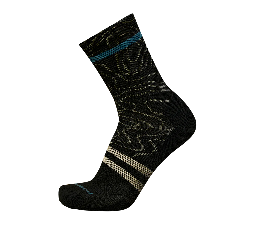 Never get lost in this ultra light 3/4 crew. The topography design is inspired by a map and if you closely, you might see your local mountain or river.
