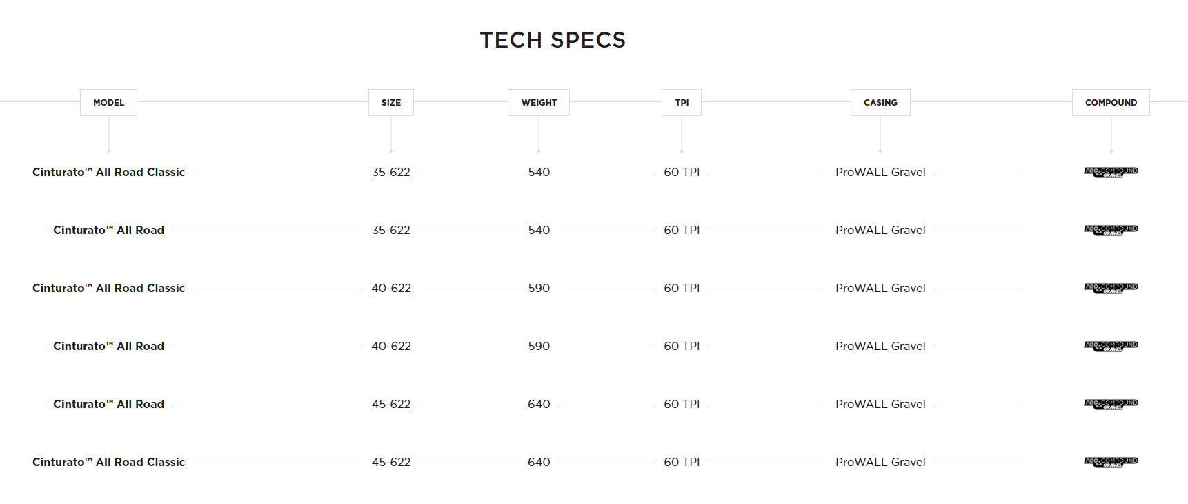 Pirelli Cinturato All Road е перфектна гума за асфалт, твърди настилки и леки чакълени пътища. Подпомогната от подсиления 60 TPI Tubeless Ready каркас и найлонов защитен слой, гумата има тясна слик лента в средата за бързо и гладко търкаляне по пътища, както и по тротоари. В съседство с него има изпъкнала структура за стабилно сцепление по чакълестите пътища, докато блоковете на протектора по ръба осигуряват стабилно завиване.